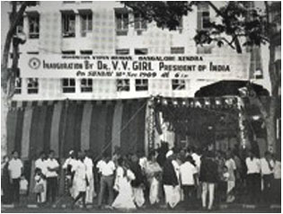 With the support of these eminent personalities and efforts of Sri G Narayana, the Mayor, a plot on the Race Course Road was acquired. Sri Sundararama Shetty, Chairman of Vijaya Bank volunteered to help raise a building for the center. Bhavan’s building was inaugurated by President V.V. Giri on November 16,1966.