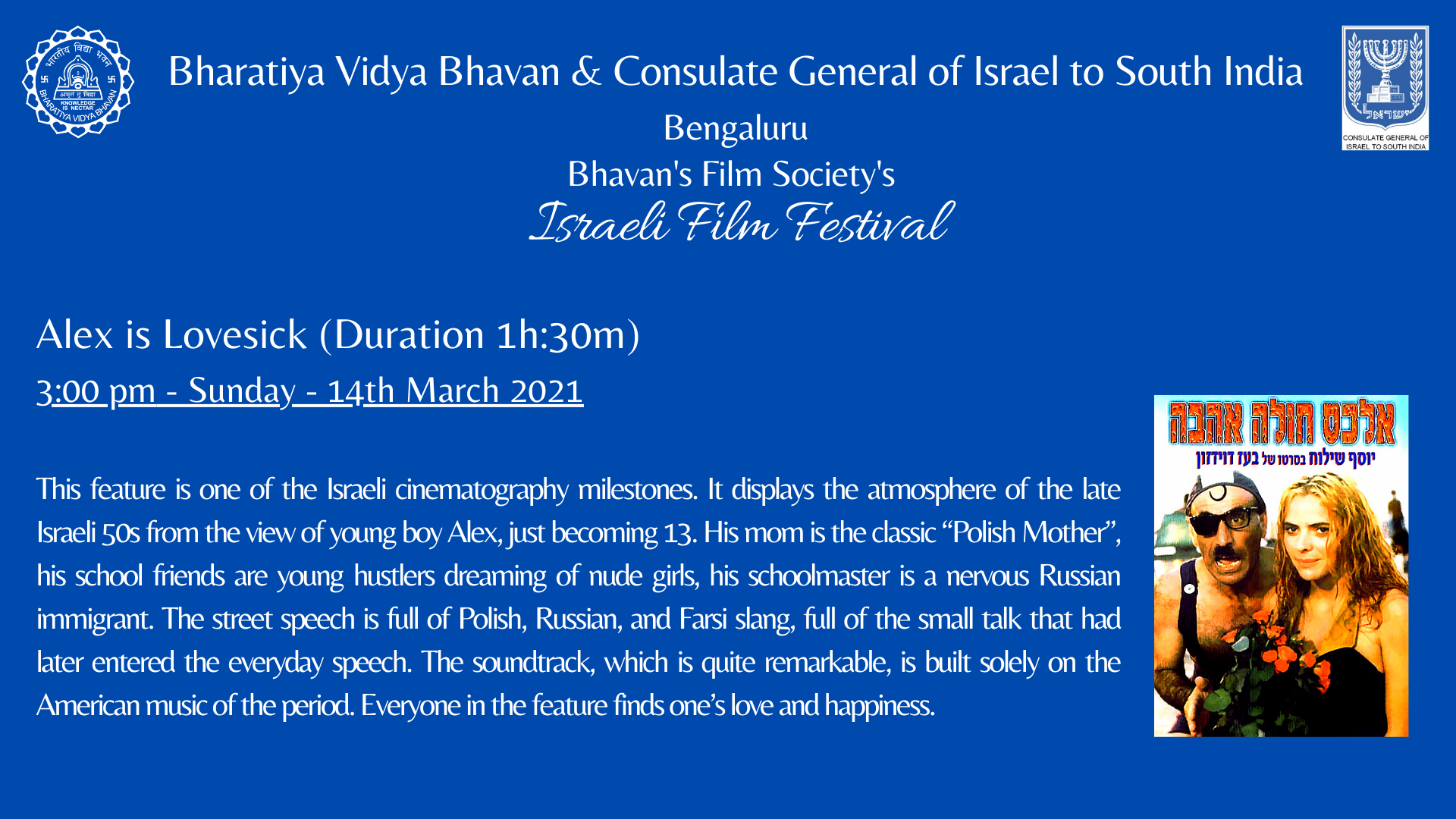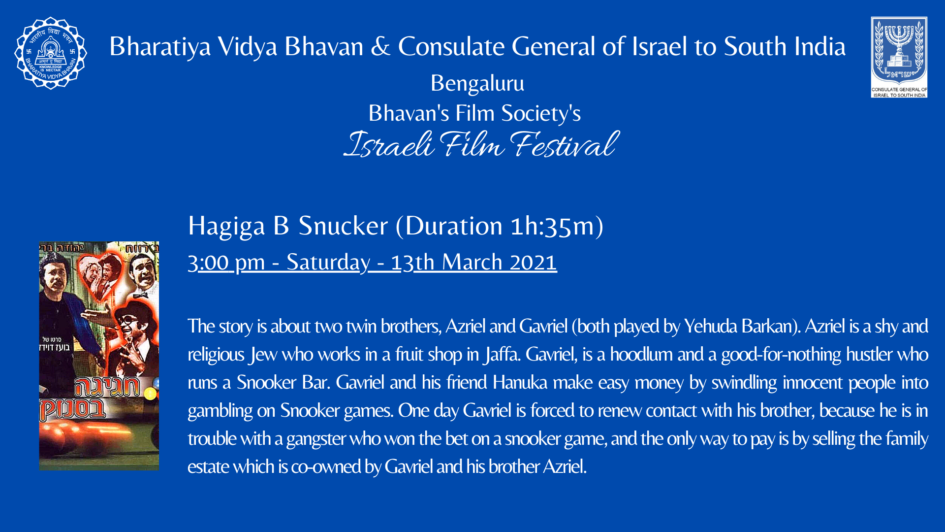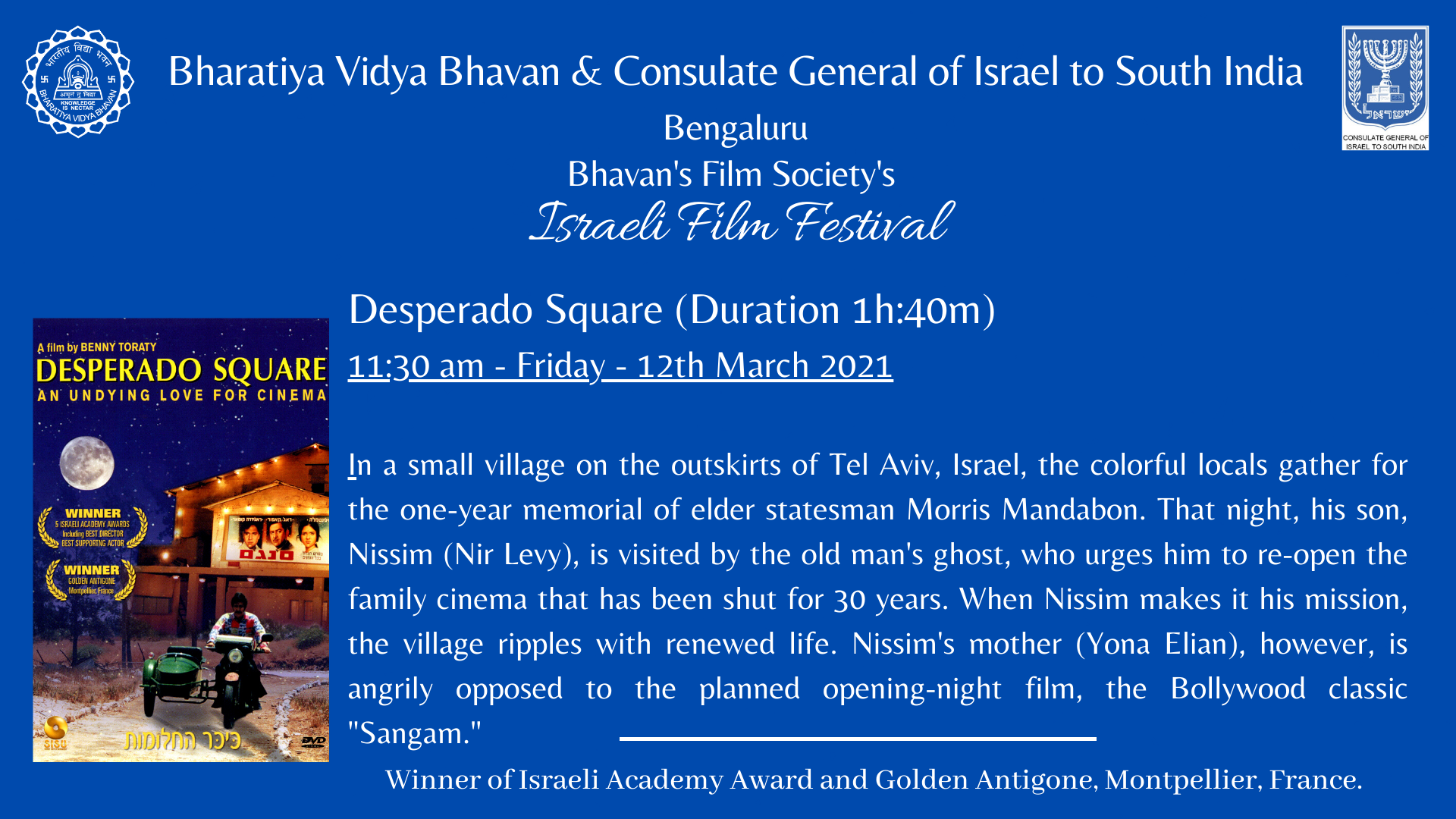The Consul General of Israel to South India, His Excellency Mr. Jonathan Zadka inaugurated the Israeli Film Festival. National Award Winner, and Wing Commander Shri. H. G. Dattatreya graced the occasion as the Guest of Honor.